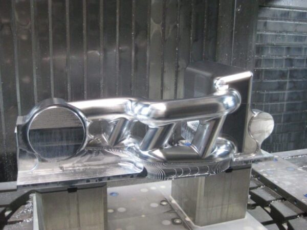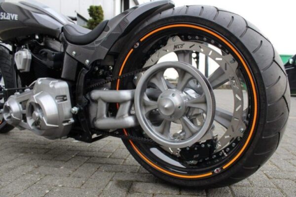 Die NLC Einarmschwinge für Harley Davidson Breakout entsteht aus einem Block hochfestem Aluminium. Auf dem 5-Achs Bearbeitungszentrum wird die Schwinge in vielen Anstellungen in Form gebracht. Die NLC Schwinge ist in dieser Form und Ausführung einzigartig auf dem Markt.