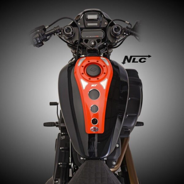 Einzigartig und nur bei der Designschmiede NLC. Ein Tankdash als Ersatz für das lieblose Gussteil auf dem originalen Harley Davidson FXDR Tank. Das Dash ist unsere Produktline angepasst und kann auch mit verschiedenen Heckfendern kombiniert werden.