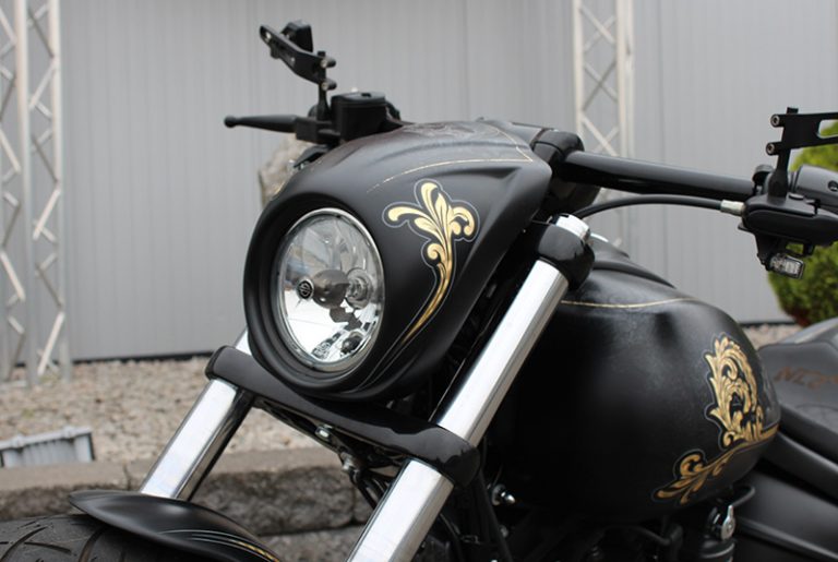 Lenkerverkleidung aus faserverstärtem Kunststoff für Harley Davidson OEM Scheinwerfer. Sie ist für V-Rod , Sportster und Softail zu verwenden.